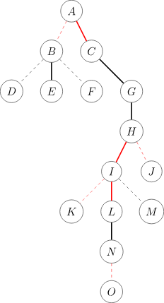 此时,原树就被划分成若干条实链,用虚边进行连接。