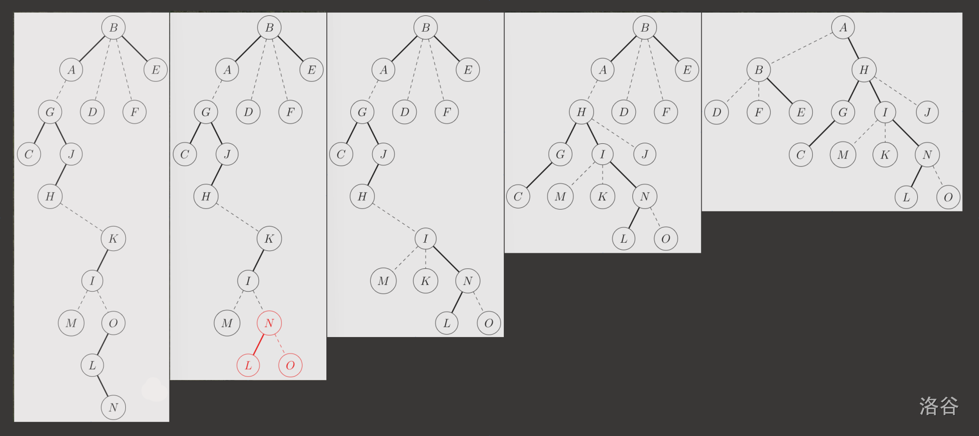 勉强用文字描述,其实对某个点旋转就是把它的父节点“拽”下来,放到该点的下面去。